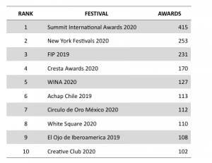 Top10 de festivales que más premios entregaron a las agencias independientes: