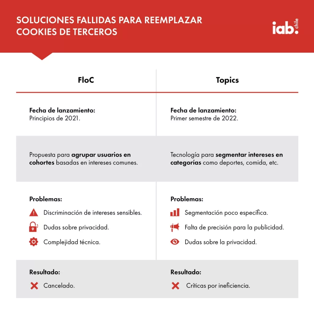 No obstante, la posibilidad de discriminar intereses sensibles, las dudas sobre la real privacidad de FLoC, su complejidad técnica y la falta de consenso sobre su efectividad en la industria publicitaria terminaron por enterrar esta iniciativa.